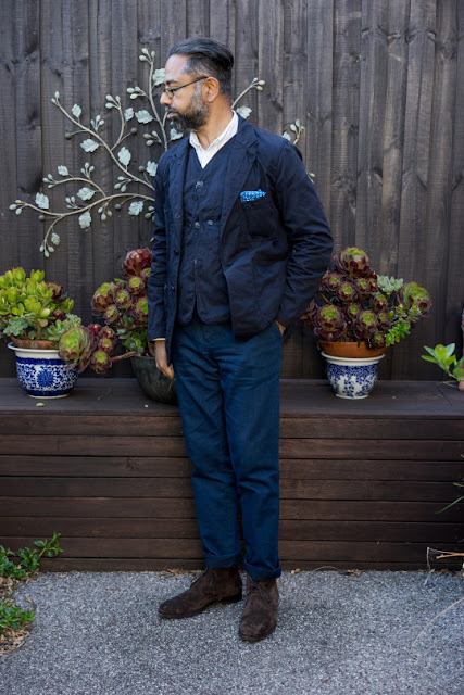 When I grow up, I want to be Gerry Nelson, aka "Gezza's Eyes," aka "The Brown Samurai" (an alter ego he's taken on while traveling Japan recently). Gerry's been featured on multiple style sites and forums over the past few years for both his tailored and casual wear, showing how he's been able to walk a fine line balancing interesting pieces with a more conventional wardrobe. He shares my love of boro textiles, sashiko, and the increasingly blurred lines between Eastern and Western style. And though Kamotejoe's and Man of Kent's styles are both very well done and personally expressive, I connect the most with Gezza's Eyes' incorporation of Japanese brands into his daily wear, which is a bit more subtle and restrained. Gerry is also a cat person, but nobody's perfect.